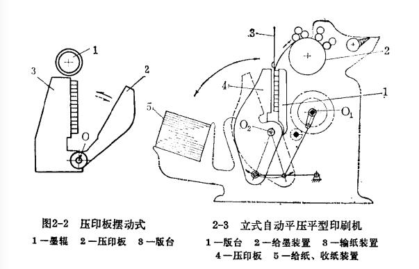 根據(jù)印刷工藝要求,要得到墨色均勻的印刷品,整個(gè)版面上的壓印時(shí)間應(yīng)該相同?墒菈河“鍞[動(dòng)式這種機(jī)型,其壓印板繞點(diǎn)擺動(dòng),當(dāng)壓印板開始接觸印版進(jìn)行壓印的這一瞬間,壓印板工作面與印版之間將產(chǎn)生一傾斜角,這個(gè)角度雖然很小,但是,使印版下半部與壓印板接觸較早而上半部較遲,同樣,當(dāng)壓印板開始打開時(shí),印版上半部與壓印板離開較早而下半部較遲,結(jié)果使印版上下各部分的壓印時(shí)間不相同,即油墨的轉(zhuǎn)移量不相等。影響印刷質(zhì)量。所以,這種印刷機(jī)一般只適用于印刷文字版,簡(jiǎn)單的插圖、表格及各類零件印刷品。目前,這種機(jī)型在我國(guó)中、小型印刷廠中還應(yīng)用較廣。