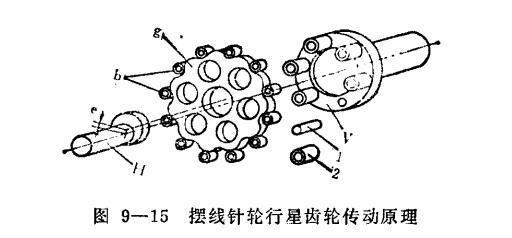擺線針輪行星齒輪傳動是少齒差行星齒輪傳動的另一種形式,其結(jié)構(gòu)和工作原理與前述漸開線少齒差行星齒輪傳動基本相同,不同之處主要是齒廓曲線。
